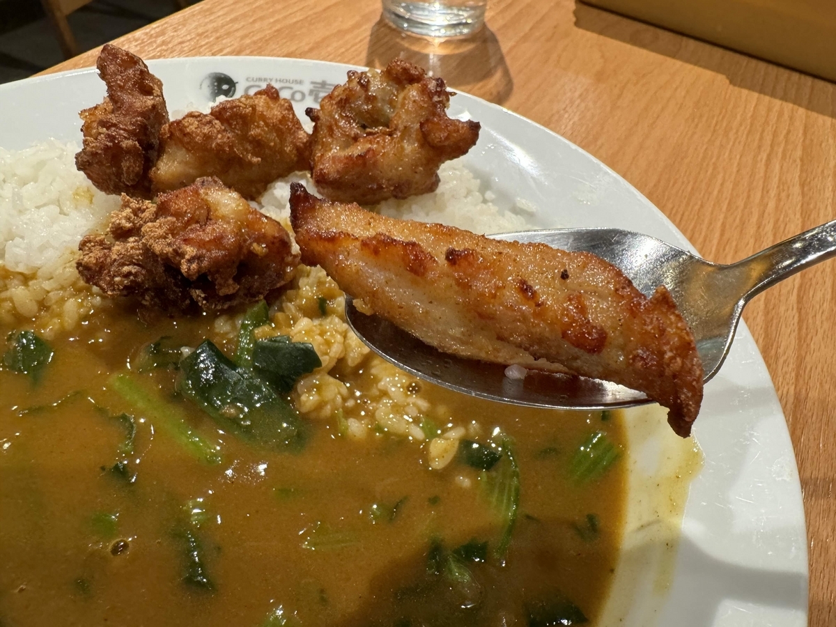 ほうれん草+から揚げ(フライドチキン?)のカレーです。日本でも結構贅沢なトッピングですよね。ココイチってちょっとお高めなんですよね…それは台湾でも同じです。
